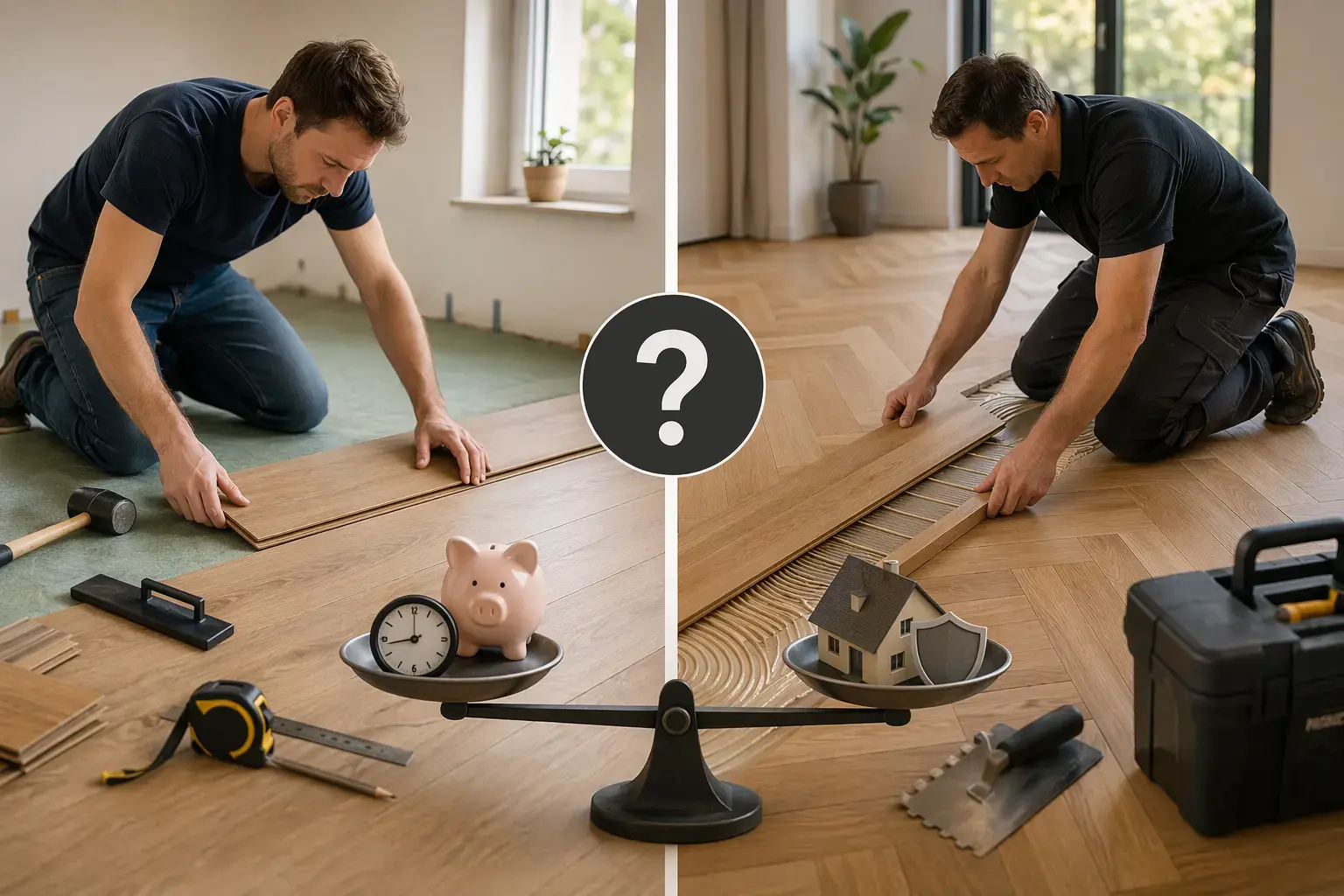 Welke elementen bepalen of je een vloer zelf legt of laat plaatsen?