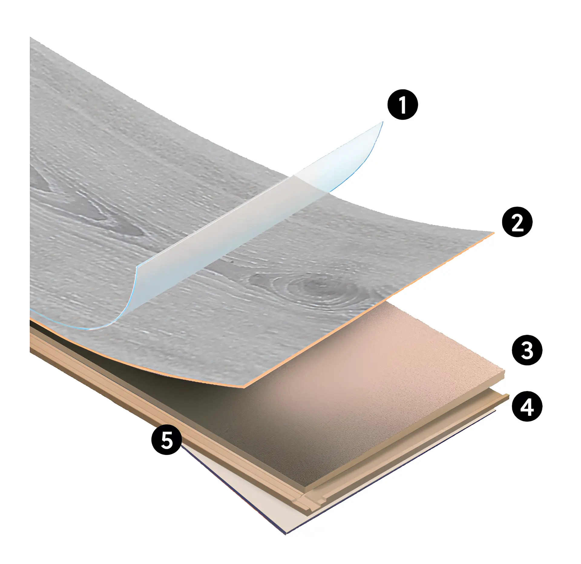 - Een waterbestendige kern van HDF (High Densiteit Fibreboard)