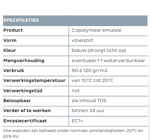 Te gebruiken als voorstrijk op poreuze en niet-poreuze ondergronden, zoals cementdekvloeren, betondekvloeren, polybeton zonder curing, anhydrietvloeren, oude tegelvloeren, oude lijmresten, als hechtverbeteraar voor vloeren en wanden en voor zowel egalines als tegellijmen.