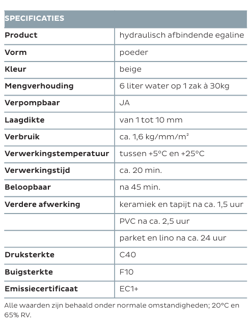SL C990 SPRINTER is geschikt voor het egaliseren van de volgende ondergronden:-cementgebonden dekvloeren-betonnen vloeren-oude tegelvloeren-oude egalisatielagen