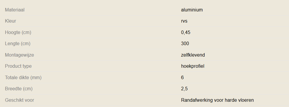 Hoeklijnprofiel fijn voor rigidvloeren kleur RVS 300cm