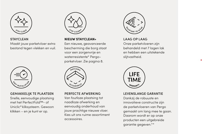 - StayClean+ technologie: Waterdicht tot 72 uur en vuilafstotend – voor een zorgeloze vloer.